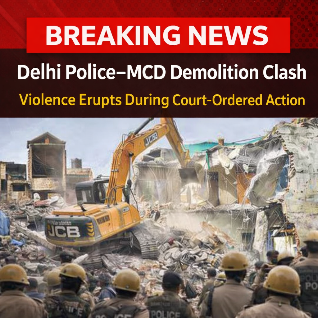 Delhi Police demolition clash broke out in the early hours of January 7 after authorities carried out a court-ordered demolition drive near the historic Faiz-e-Ilahi Masjid in Delhi. The operation, conducted by the Municipal Corporation of Delhi (MCD) under Delhi High Court directives, led to violent protests, stone-pelting, and police action involving tear gas shells.